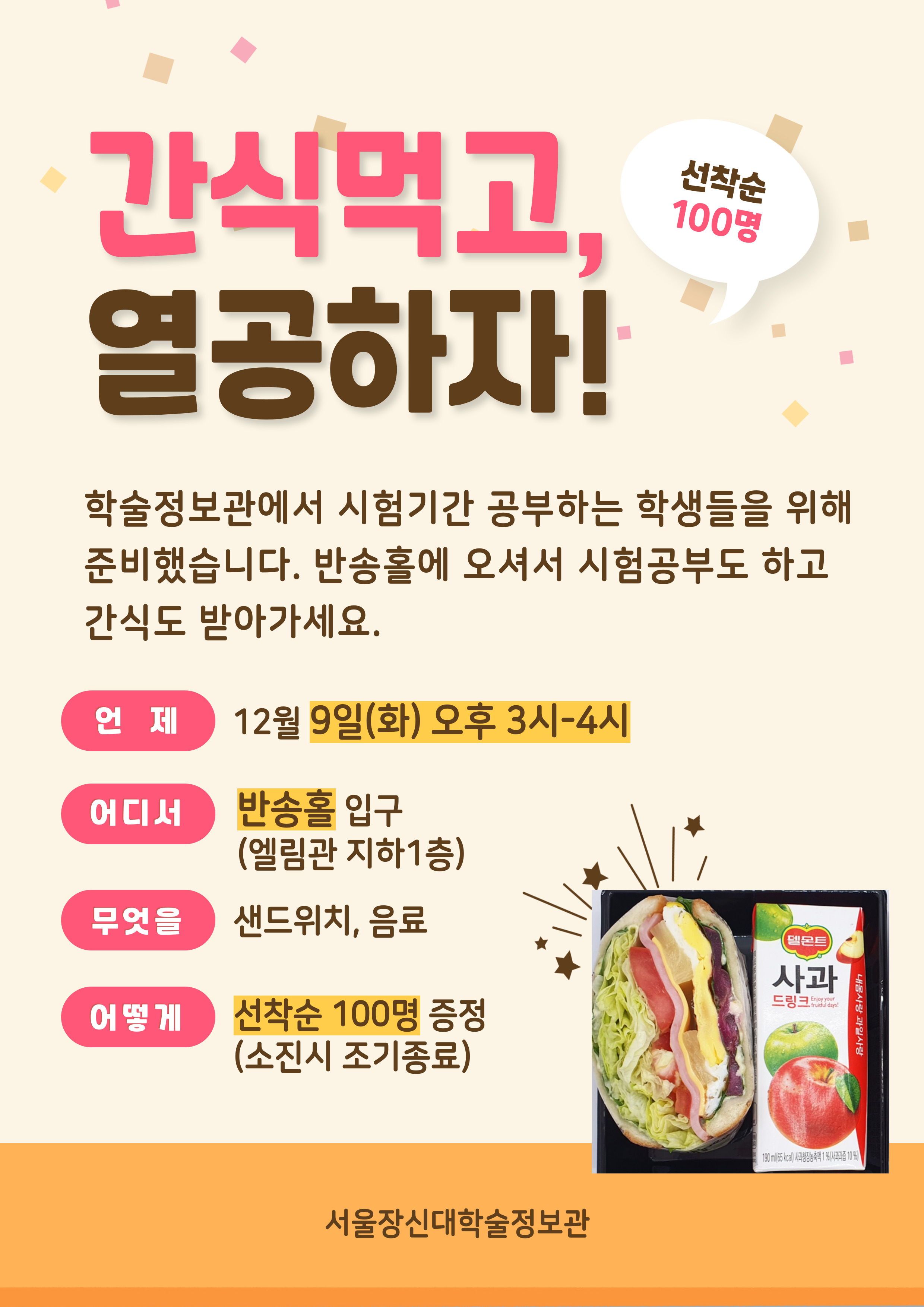 이용시간 학기중 방학중 [참고정간실, 자료열람실] 월·화·목·금 수 토·일·공휴일 09:00 - 21:00 09:00 - 17:00 휴실 [반송홀, 그룹스터디실] 주중 토·일·공휴일 09:00 - 21:00 휴실 [참고정간실, 자료열람실] 하계 동계 토·일·공휴일 09:00 - 15:00 09:00 - 16:00 휴실 [반송홀, 그룹스터디실] 하계 동계 토·일·공휴일 09:00 - 15:00 09:00 - 16:00 휴실